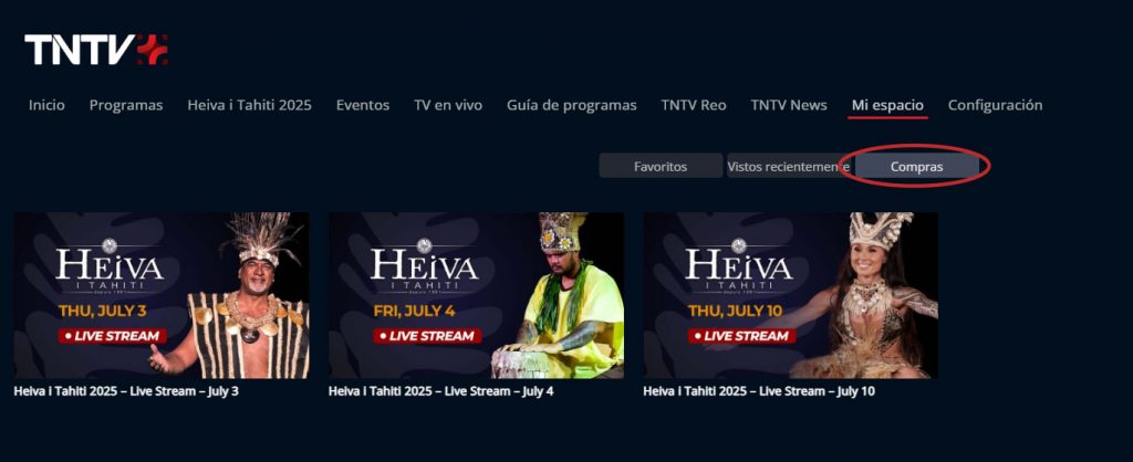 Haga clic en “Acceder al contenido comprado en TNTV+” para ser redirigido a “Mi espacio” en la pestaña “Compras”.
